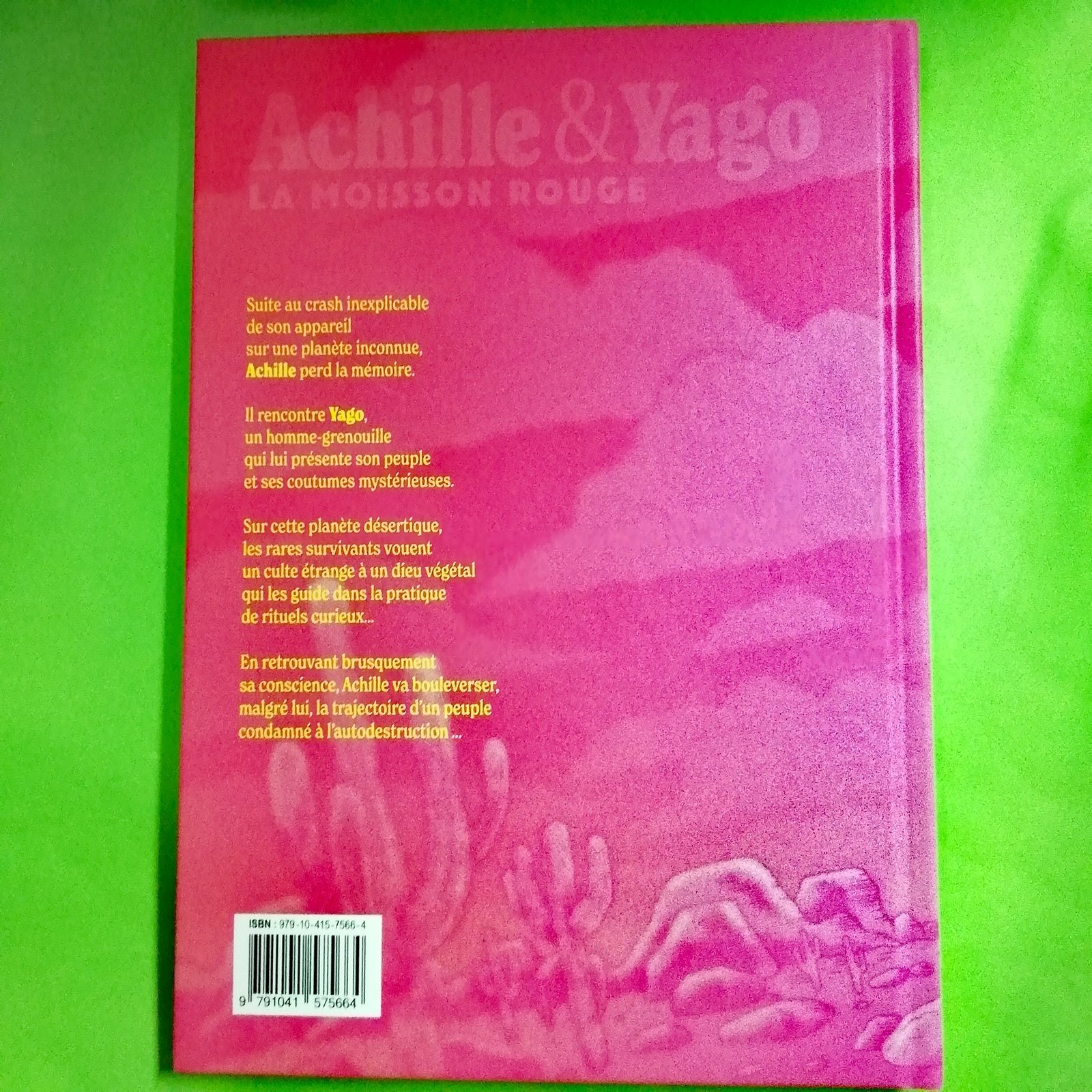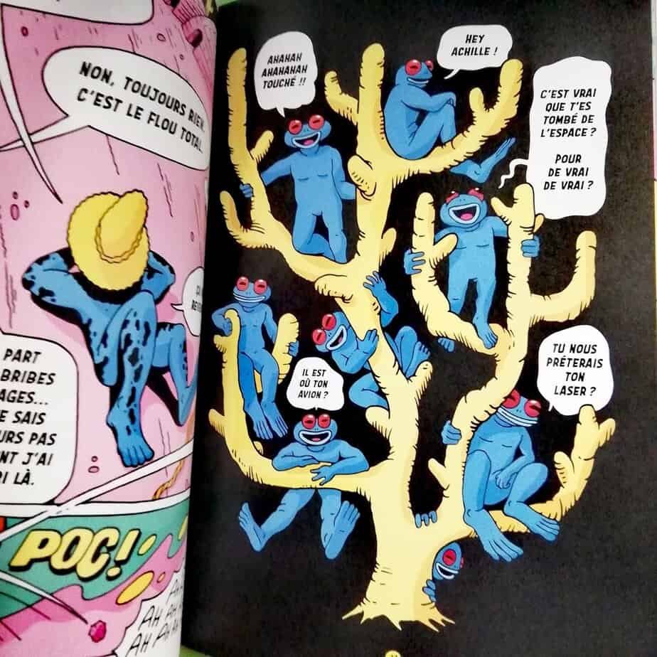 Sur une planète désertique, Achille, un voyageur spatial, se réveille, amnésique des raisons pour lesquelles il se trouve ici.  Il est recueilli par l’amphibien Yago, un local qui va lui présenter sa tribu et les rites religieux auxquels ils se soumettent et qui règlent leurs journées.Gestion de l’eau, religion, acceptation de l’autre, tous ces thèmes s’entremêlent dans cette aventure psychédélique, colorée et pop art, avec de grandes cases et une palette de couleurs uniques.