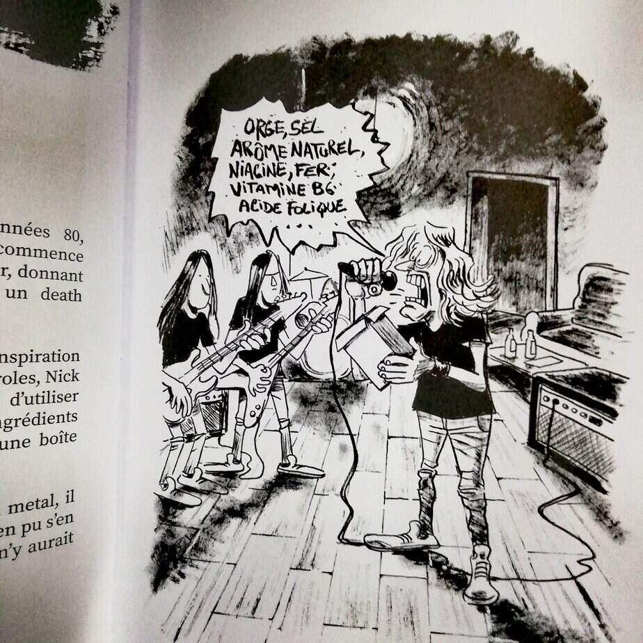 Ce recueil illustré d’une centaine de pages présente 42 courtes anecdotes concernant des groupes de métal. Chaque anecdote est illustrée de manière humoristique en pleine page par Johann Guyot.