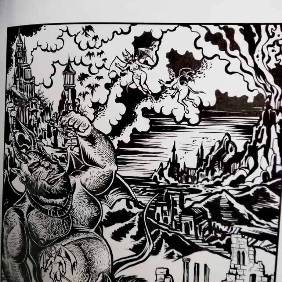 Chaque illustration a un nom et évoque un univers mélant stupre, imagerie métal, satanisme et magie.
