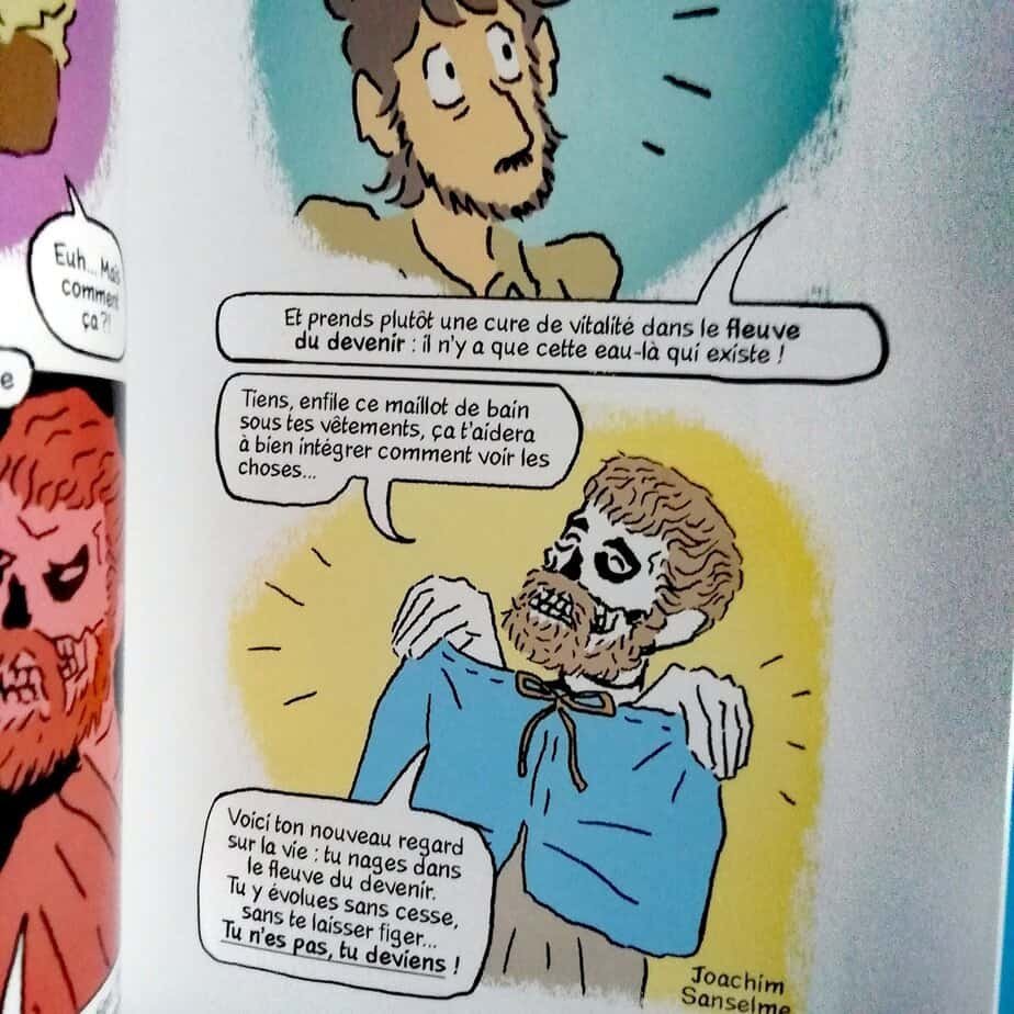 Joachim Sanselme opère un travail de vulgarisation de la philosophie à travers des strips mettant en scène son alter ego. Suivi par plus de 200 000 personnes sur les réseaux sociaux, Joachim Sanselme a logiquement choisi la voie de l’autoédition pour publier ses recueils de strips.