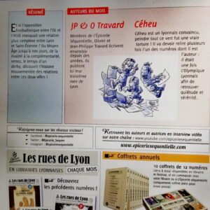 Les Rues de Lyon est un mensuel bd où, à chaque numéro, un artiste local lyonnais raconte en 10 pages un point d’histoire de la ville en BD, de manière didactique. Chaque numéro est indépendant. Vous pouvez donc picorer dans cette grande bibliothèque du savoir lyonnais. Evènements, faits historiques, personnalités, anecdotes propres à la ville… une multitude de thèmes sont abordés.