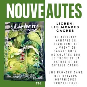 Lichen est une anthologie de bds sur le théme des mondes cachés de la nature. 13 artistes y présentent en grande majorité de courtes bandes dessinées inédites de quelques pages sur ce théme.