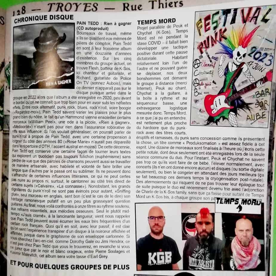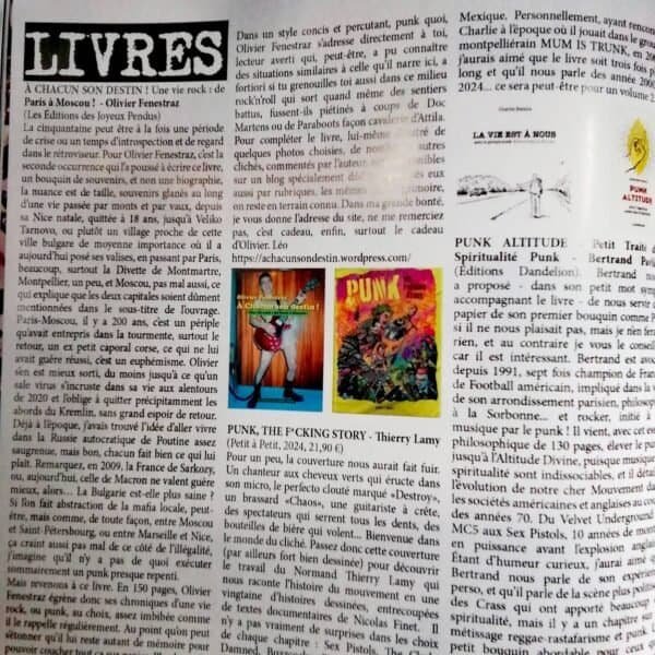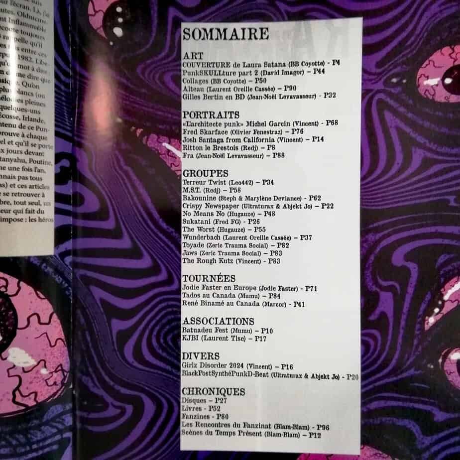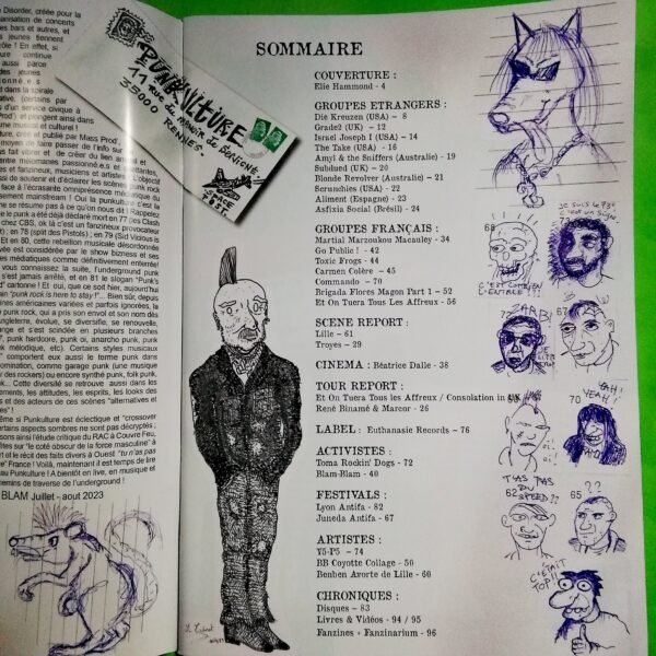 Mais aussi des conseils de lecture punk, parfois quelques pages de bd, des infos sur des festivals passés, sur les fanzines…