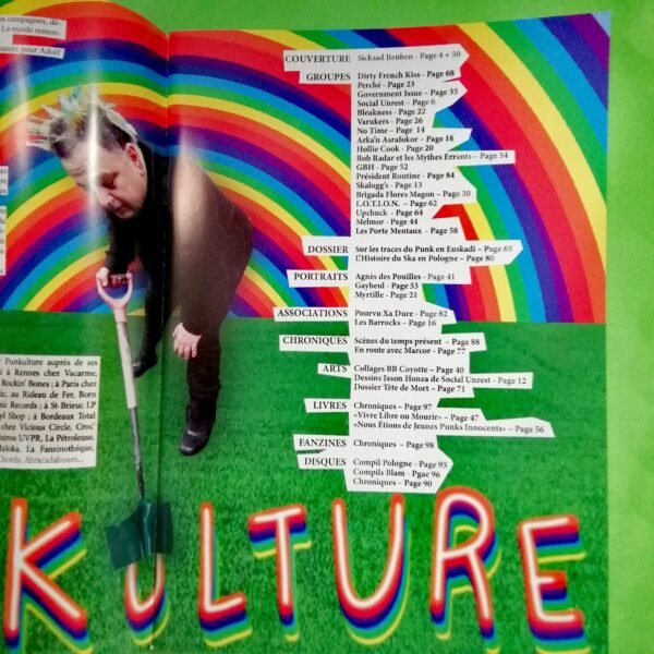 Punkulture est un fanzine consacré à la musique punk et globalement à la culture punk. Un fanzine sur papier glacé rempli à ras à bord avec une grosse quantité d’articles variés: interviews, critiques, des infos sur les différents mouvements punk et leurs variations locales dans certaines villes de France ou à l’étranger.