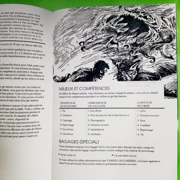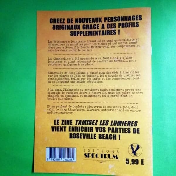 3 zines « Tamisez les lumières » sont aussi disponibles en supplément, développant l’un des personnages supplémentaires, un autre de nouvelles entités et le troisième un scénario complet.