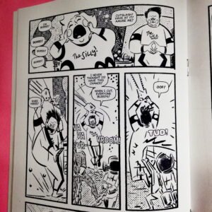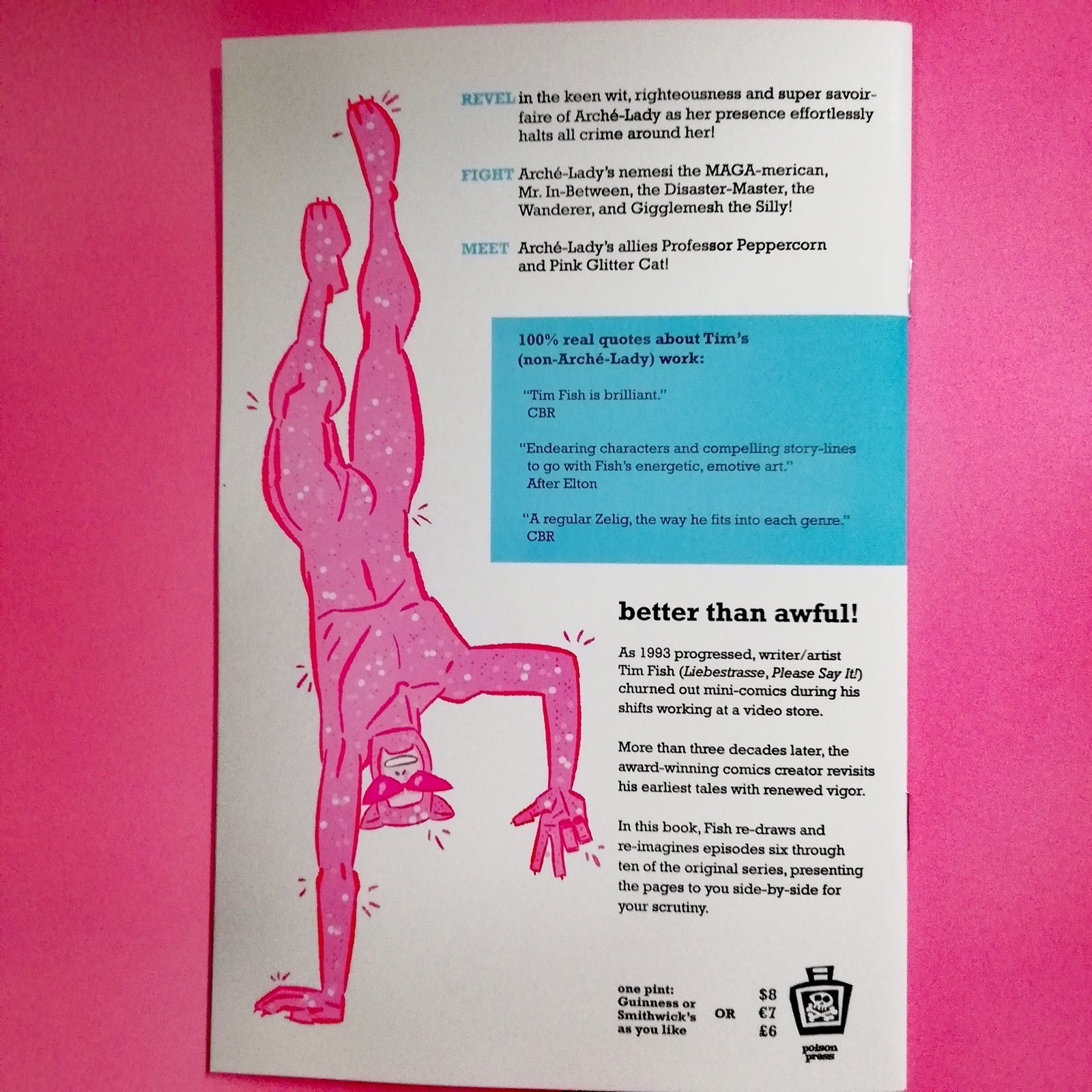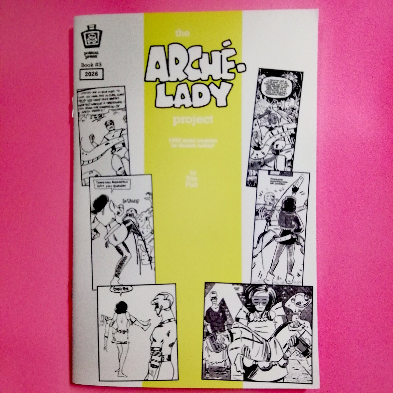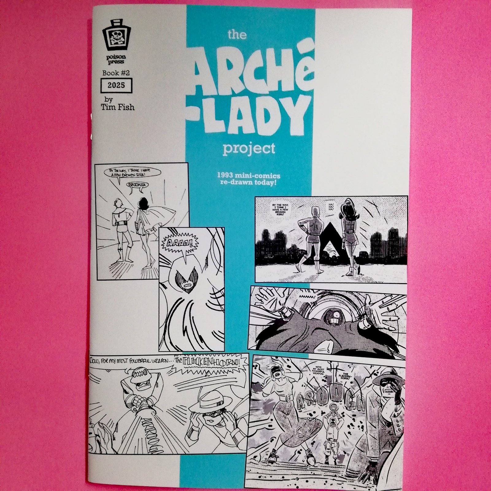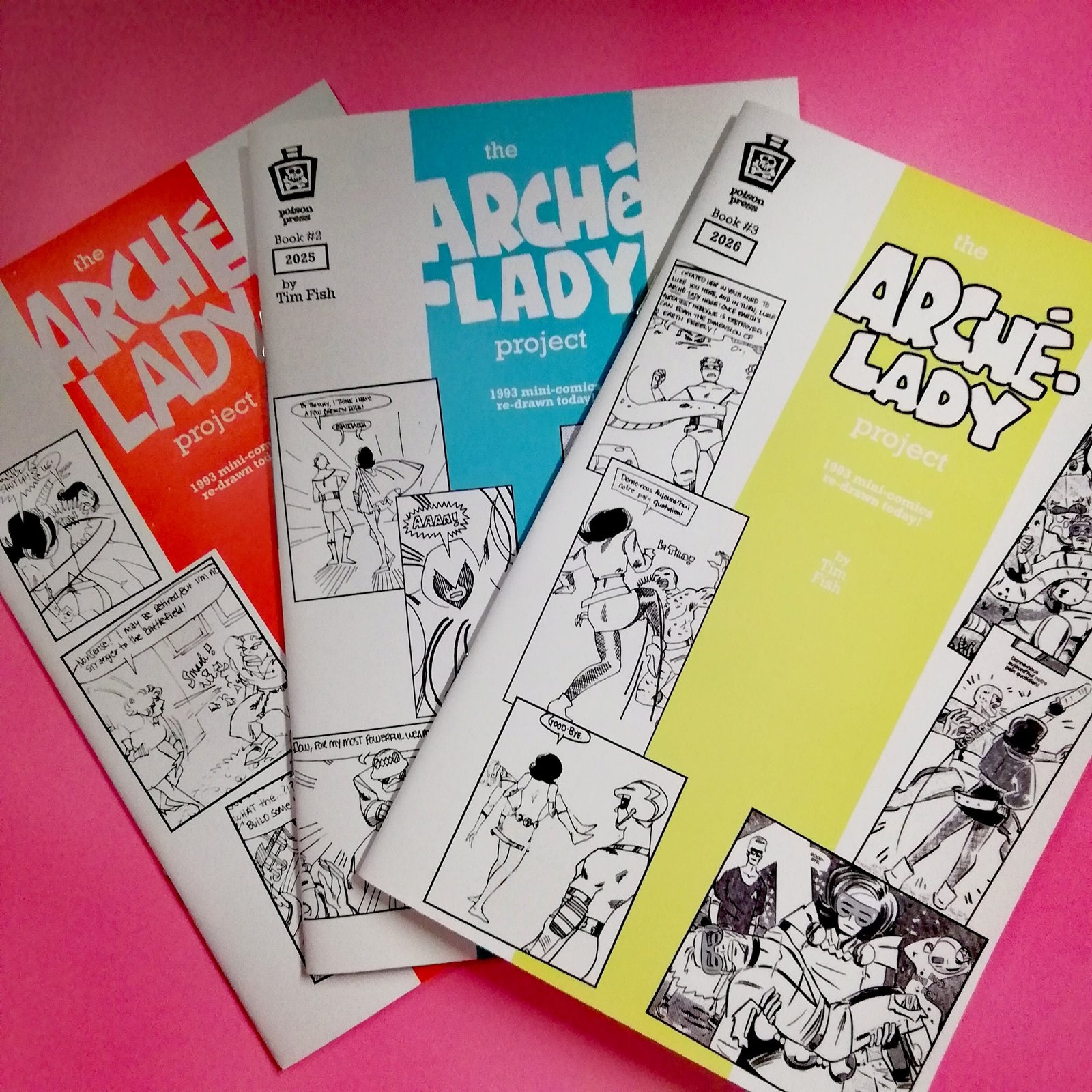 Arche Lady est une série super-héroïque complétement barrée crée par l’artiste de comics Tim Fish au début des années 90, autoproduite, faite de bric et de broc, et qui a connu plus d’une centaine d’épisodes. Arche Lady, flanquée de son side-kick Astro Boy (son souffre-douleur), y combat des vilains uniques et trés camp.